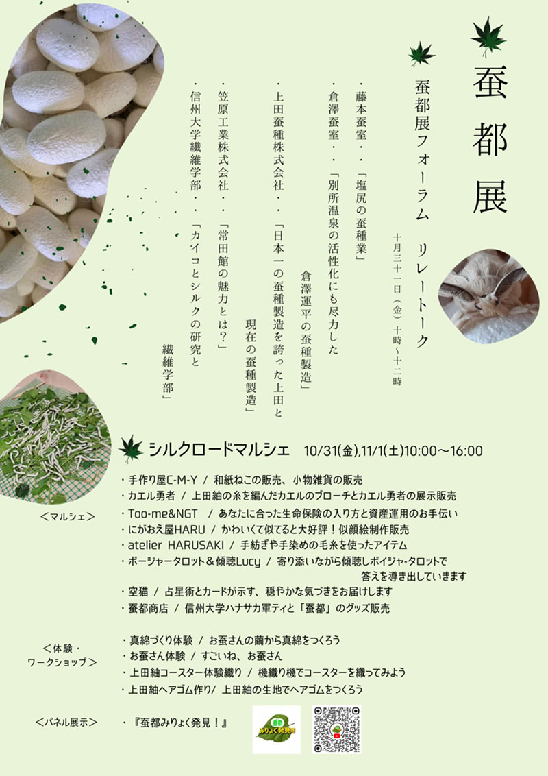 かつて蚕種製造業から養蚕、製糸業、織物業の全てを行う「蚕都」として栄えた上田における、各分野の産業に関わって来られた方々にお話をお聞きし、「蚕都」の歴史の流れを知り理解を深めましょう。