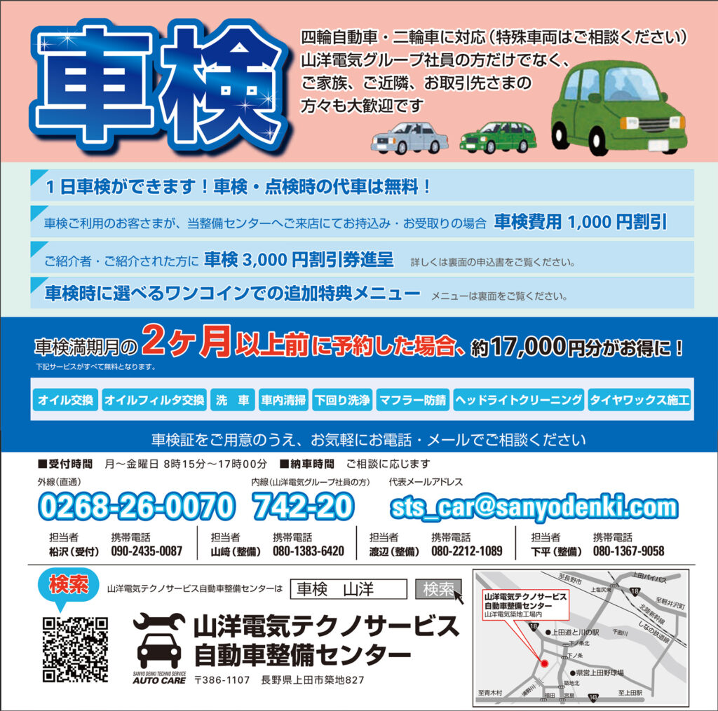 - 1 日車検 ができます!車検・点検時の代車は無料!