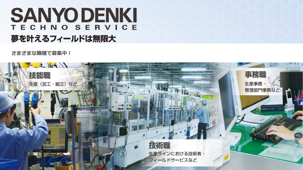 - 山洋電気グループの一員として、生産・サービス・設計・物流・施設管理などの分野で様々な役割を担っています。