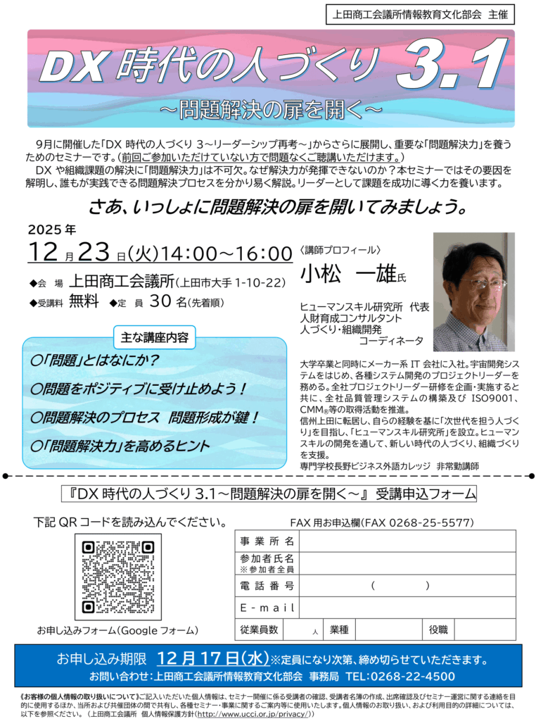 ※人”財”育成セミナー「DX時代の人づくり」シリーズの資料を当HP内にて配布しています。