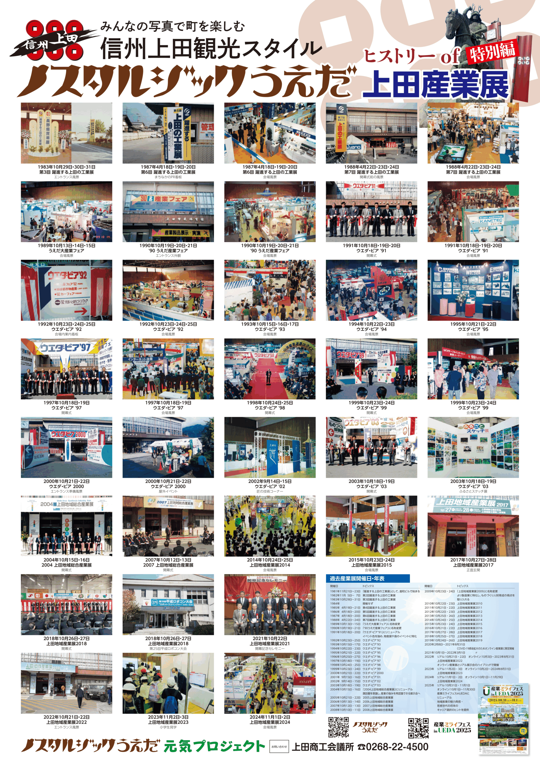 今回は産業ミライフェスinUEDAへのリニューアルを記念して、44年間にわたる上田の産業展の歴史的写真を一挙にまとめた「ヒストリー of 上田産業展」を無料で配布いたします!