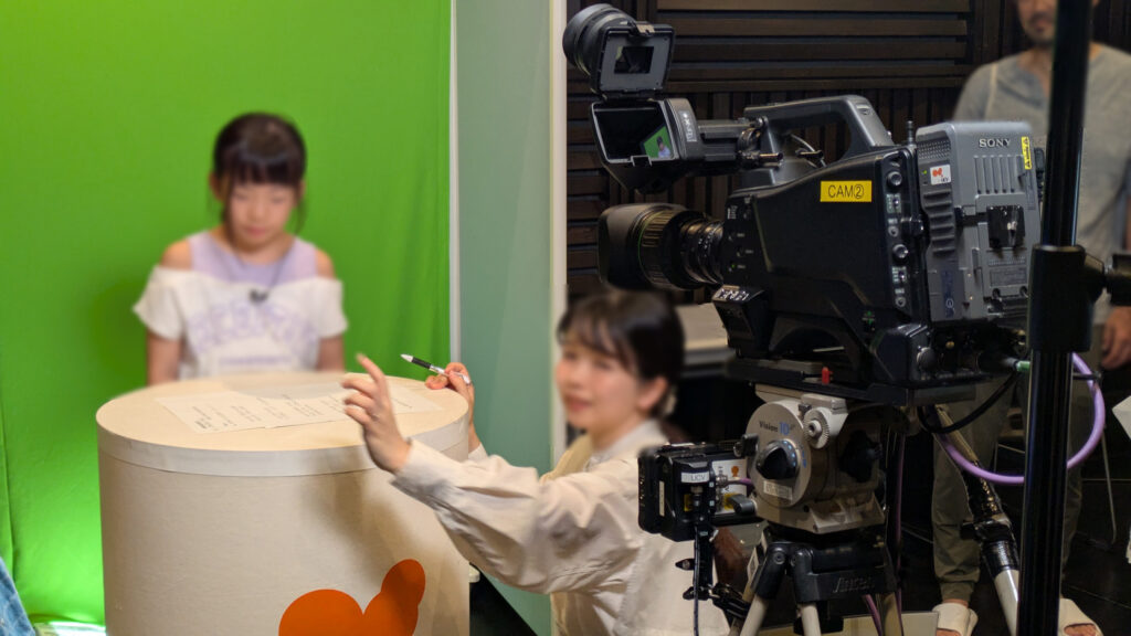 産業ミライフェスではアナウンサー体験ができます。上田ケーブルビジョンのスタッフからアドバイスをもらいながら原稿を読んでみよう!撮影された映像は後日ケーブルテレビで放送するよ。